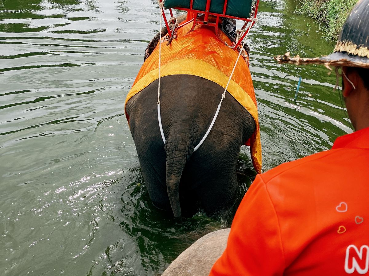 象乗りはツアーについているのが10分コース。現地で川に入る時間延長は一人300か500バーツを払えばできると案内がありました。金額忘れました。この辺りでグループに差が出ると待ち時間が発生するかもしれませんがわたしたちはどちらも選択しなかったので、スムーズでした。途中象使いさんが象使いさんと観光客の写真や、像に乗っている私たちの写真を撮影してくれました。像乗りは最大2人です。20バーツのチップは像からおりたあと、像さんがとりにきます。必須です。