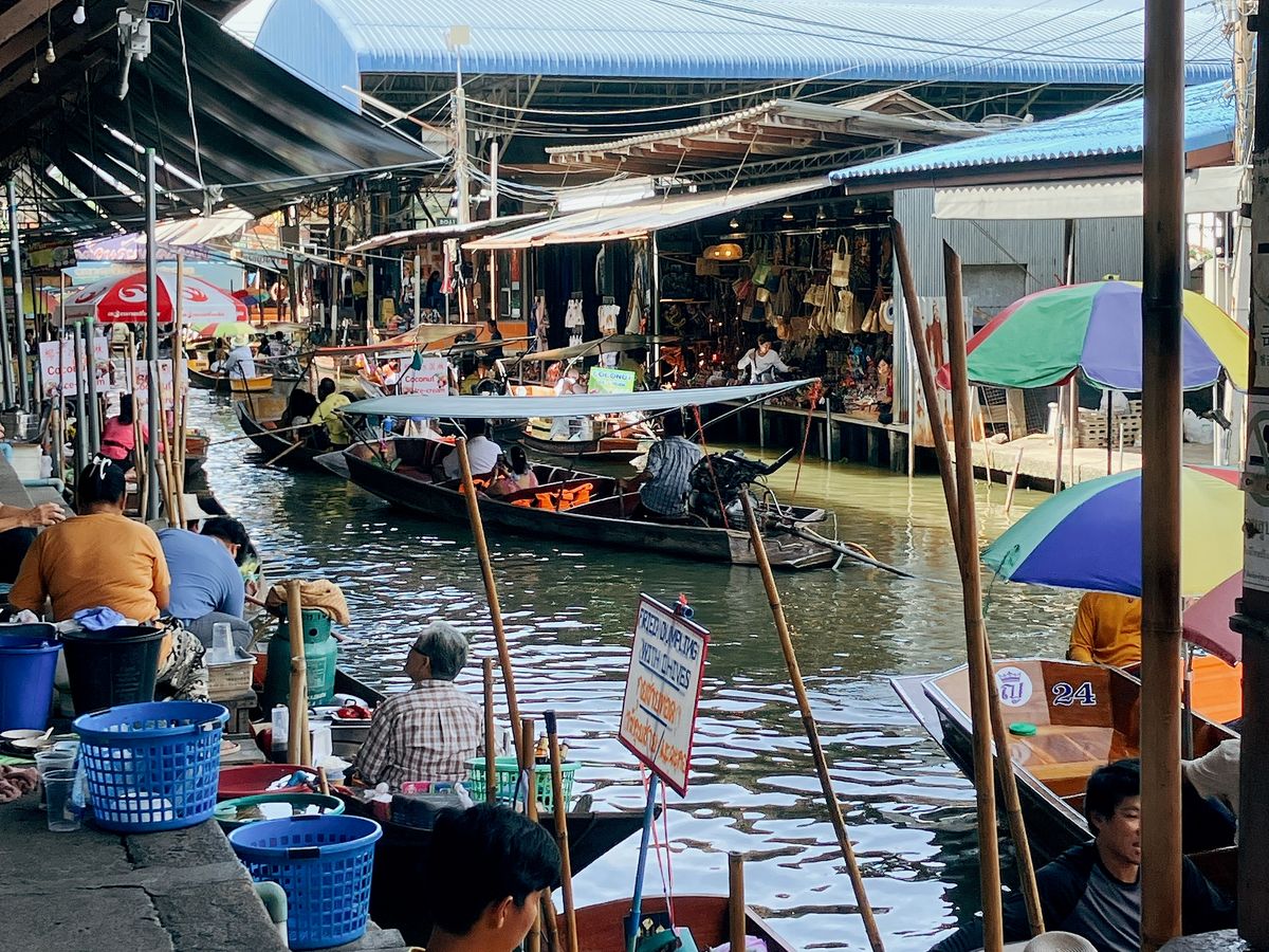 水上マーケットやメークロン鉄道市場は自力で行くのが難しいためツアーを利用しましたが、正解でした!メークロン市場は電車通過のタイミングが限られているので、ちょうど良い時間に合わせて回ってくれます。私が参加した時は出発が少し遅れたため、水上マーケットから先に行きました。スムーズに回ってくれるので快適に過ごせました。移動時は全員一緒に行動しますが、買い物時間などは自由に行動できて楽しめます。ご飯も美味しかったです!素敵なツアーをありがとうございました。