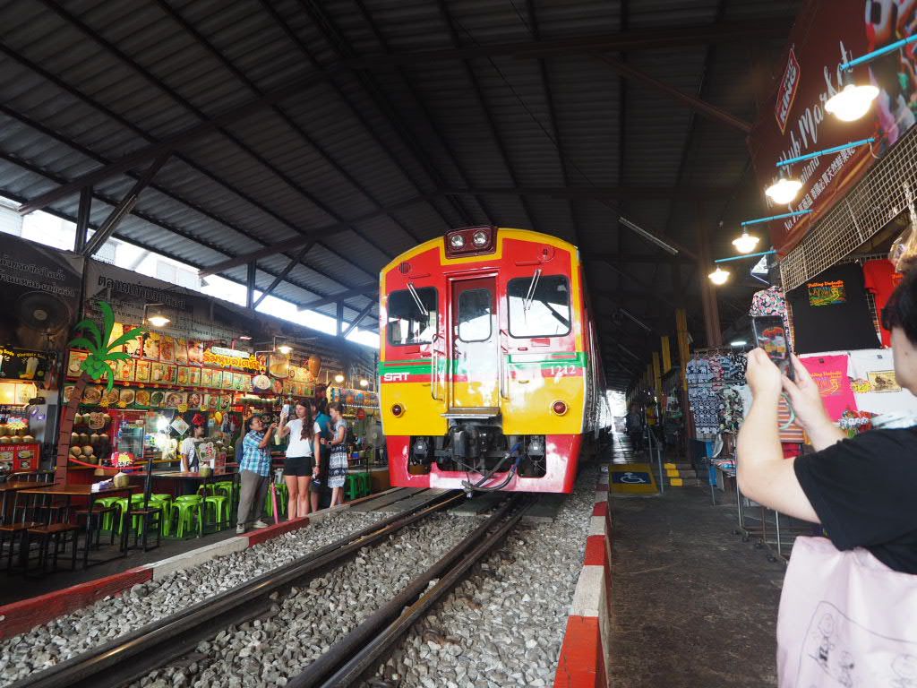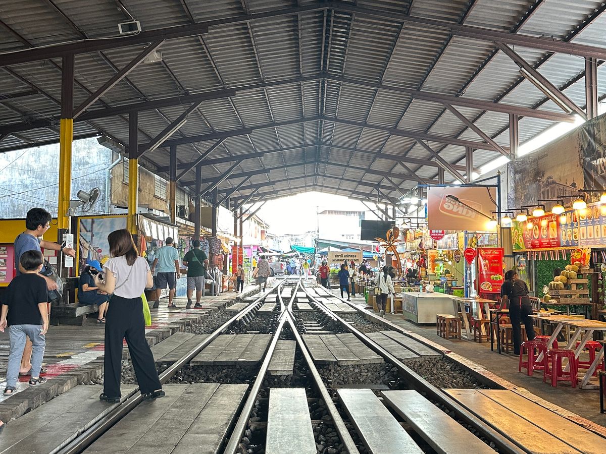 まずは電車が入ってくる時間に合わせてメークロン市場から。