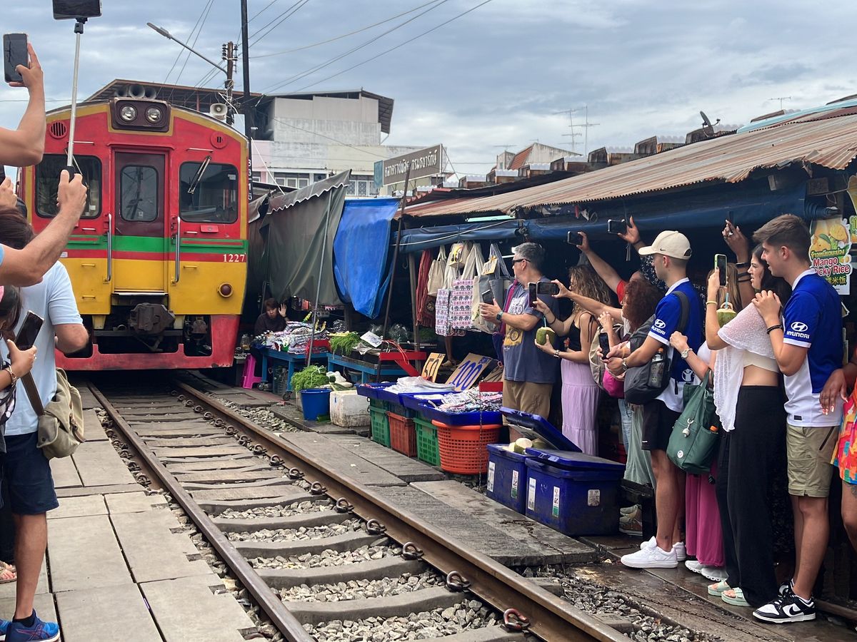 メークロン市場では、電車が想像以上に接近して走るのでビックリしましたが、線路沿いのお店の方が電車な来るタイミングやシャッターチャンスを教えてくださったり、コミュニケーションも楽しめました。