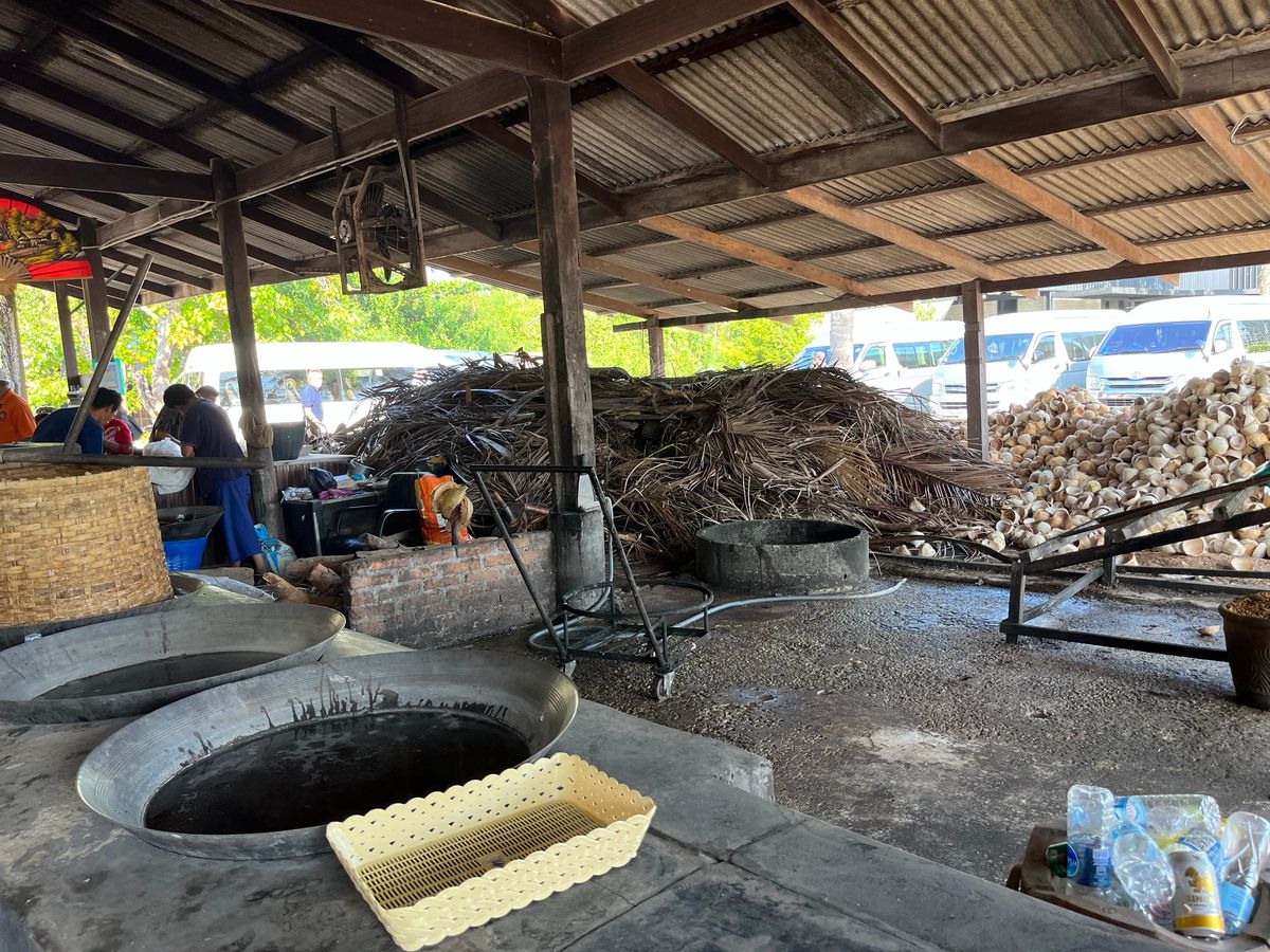 3つ目は謎のココナツ農園。ココナツの花や実の説明をするんだが、どういう訳か売るものがあんまり無い。ココナツから取れる糖(黒砂糖みたいなやつ)くらいしかなく、あとは同じようなお土産が並ぶ。直前にカオス小舟マーケットを見ただけに、癒しの空間となっている。ここでは誰も何も売りつけたりしない。