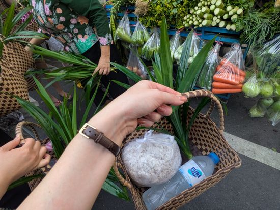 クラスでは8人で1つのグループになり、市場見学と料理教室をします。私は中国人6人、韓国人1人、日本人1人のグループでした。一人参加している人は少なそうでしたが、一緒のグループになった韓国人の女性も一人参加のようで安心しました。配慮してグループ分けしてくれているように思いました。