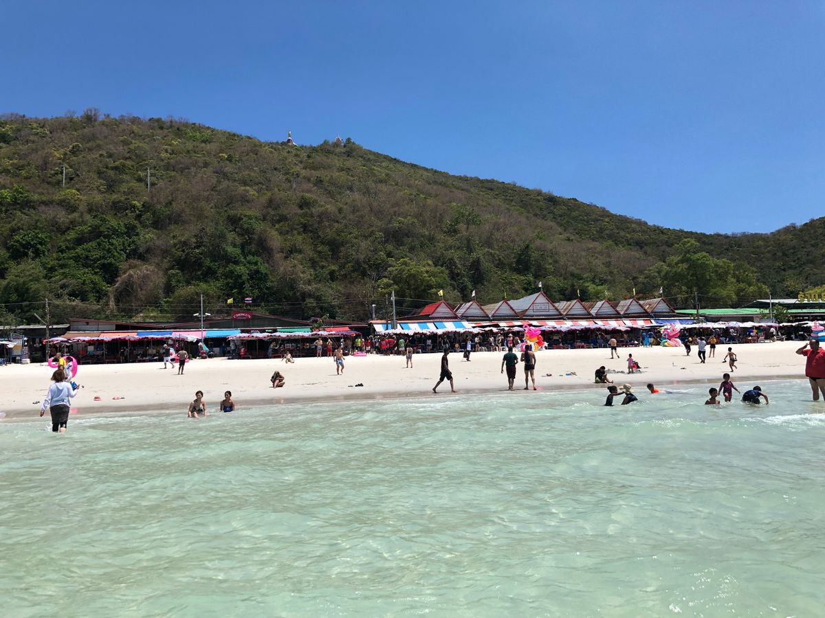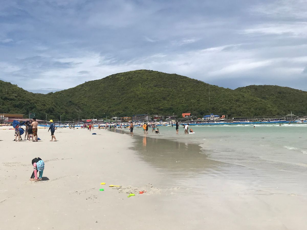 一方ラン島はまだ海も透き通っており砂浜もサラサラ、感激します。口コミにあるような中国人の団体も見かけましたが、マナーの悪い人はいませんでした。子どもたちは夢中で砂遊びや水遊びを楽しんでいました。さて食事ですが、シーフードは、エビと白身魚でした。美味しくいただきました。シーフード以外のものの品数のほうが多いですが、パッケージツアーの食事に過度な期待をする方が野暮です。波が高いこともあり、通常より1時間早く切り上げて島を出ました。シャワーは1人50バーツ、トイレは無料でした。ロッカーもありましたがガイドさんが貴重品以外は代わりに預かってくれました。1つ申し上げることがあるなら、島への移動にボートを使いますが、浅瀬の海を自力で歩いてボートまでいく必要があります。降りるときも同様で、海水に浸かりながら波打ち際を目指します。そのため太ももから下あたりはずぶ濡れです。子どもを連れ、大きな荷物を持ちながらのこの移動(特に海水浴後)は着替えた意味をなさずゲンナリしました。ボートから降りた後バスまでの砂浜の数メートルは当然徒歩です。砂だらけになりますがそれを洗う場所も時間もないので、砂だらけでバスに乗ります。オシャレして行くとえらい目に遭うと思います。(笑)