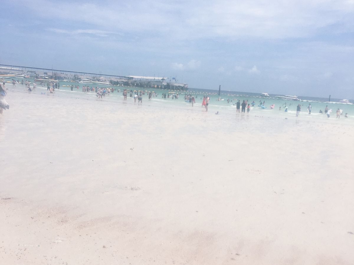 一方ラン島はまだ海も透き通っており砂浜もサラサラ、感激します。口コミにあるような中国人の団体も見かけましたが、マナーの悪い人はいませんでした。子どもたちは夢中で砂遊びや水遊びを楽しんでいました。さて食事ですが、シーフードは、エビと白身魚でした。美味しくいただきました。シーフード以外のものの品数のほうが多いですが、パッケージツアーの食事に過度な期待をする方が野暮です。波が高いこともあり、通常より1時間早く切り上げて島を出ました。1つ申し上げることがあるなら、島への移動にボートを使いますが、浅瀬の海を自力で歩いてボートまでいく必要があります。降りるときも同様で、海水に浸かりながら波打ち際を目指します。そのため太ももから下あたりはずぶ濡れです。子どもを連れ、大きな荷物を持ちながらのこの移動(特に海水浴後)は着替えた意味をなさずゲンナリしました。ボートから降りた後バスまでの砂浜の数メートルは当然徒歩です。砂だらけになりますがそれを洗う場所も時間もないので、砂だらけでバスに乗ります。オシャレして行くとえらい目に遭うと思います。(笑)