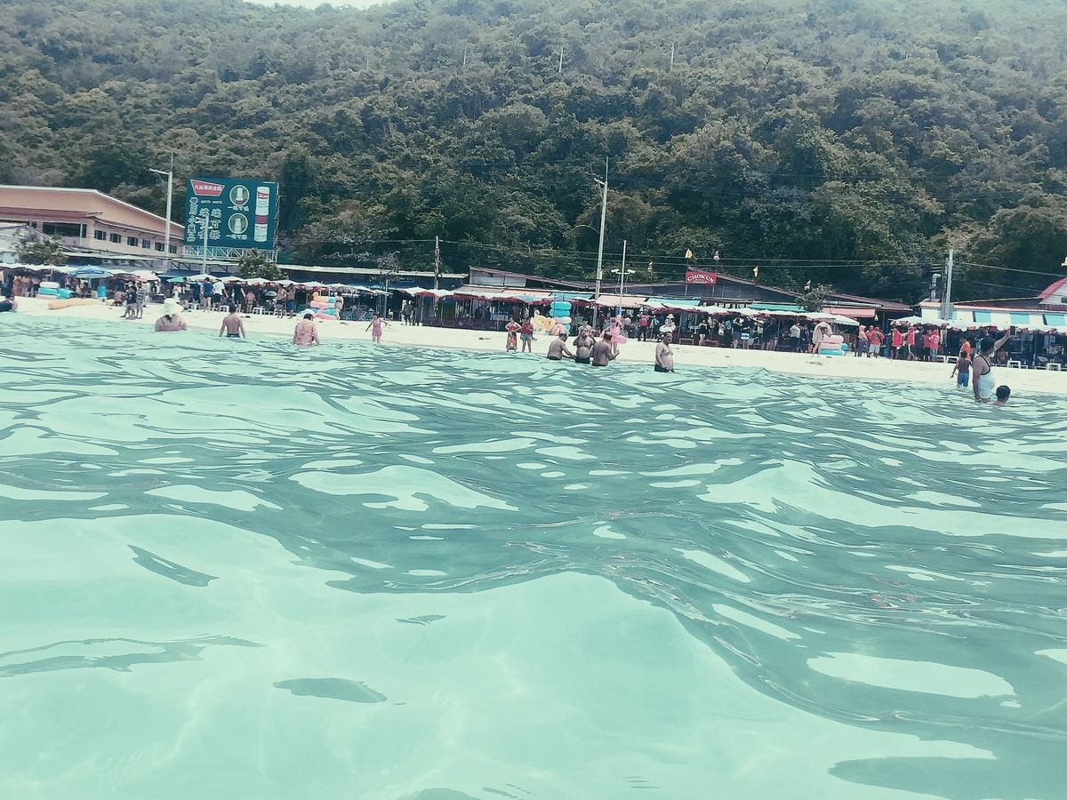 パタヤに比べてかなり透明度が上がります。雨季でも晴れてればそれなりに綺麗です。シーウォークをしましたが、雨季で海中は濁り魚も3種類しかいなかった。潜る前に日本語の注意事項の書かれた紙を見せられたが、変な日本語で意味がわからずやや恐怖のまま潜った。小3と小5の子供も参加したが、相当不安だったはず、海中散歩ならラン島ではなくもっと綺麗な離島を勧める。現地海中ガイドに終了後チップを要求された。日本語ガイドはサラッとした対応だが、ビーチで泳いでるとスマホ片手に写真を撮ってくれて、LINEで画像をくれ好印象。