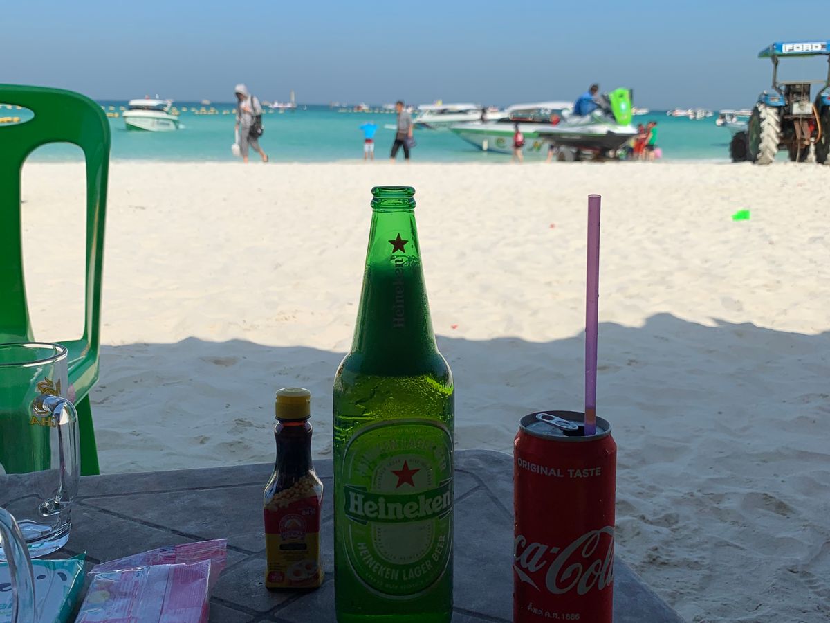 ラン島にはセブンイレブンがあるため、冷たいビールなどはリーズナブルな価格で購入することが出来ます。また、有り難いことにパラソル等の追加料金も取られません。海はかなり遠浅の海岸で、潮が引くとさらに泳げるところが遠くなります。水は澄んでいますが、非常に細かい白い砂が海水に巻き上げられているため、水中カメラを使っても真っ白にしか映りません。