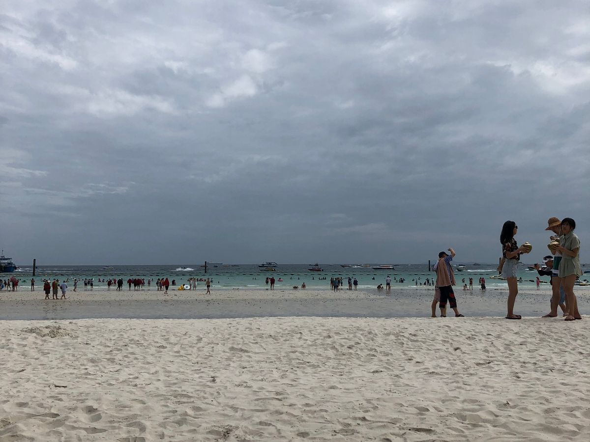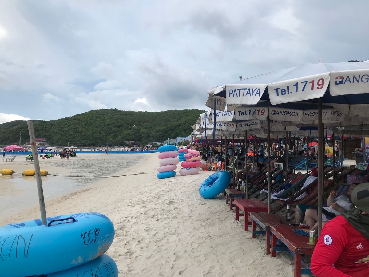本当に後悔。いろいろな書き込みがありましたが、あそこまで酷いとは正直思っておりませんでした。わざわざボートに乗って離島まででかけ、中国人とインド人の大群が・・・。おまけに天気も悪く、寒くて海にも入れず、移動もできず、土砂降りで雨漏りするパラソル?とは名ばかりの穴のあいた傘の下でベショ濡れの小汚いイスで船が出るまで時間をつぶして終了。シーフードレストランとありましたが、海の家を100倍汚なくした掘っ建て小屋でドブ臭くて正直食事のできる環境ではありません。船に乗り降りで足は砂だらけ、洋服は濡れたまま3時間かけてバンコク戻るツアーでした。このツアープラン変更した方がいいと思います。