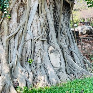 アユタヤ駅に移動後はアユタヤ名物トゥクトゥク乗車し、あまり見学者が来ない寺院にも(ブラックピンクのリサが菩提樹の根っこに座ってポーズを撮るのを真似しました(笑))