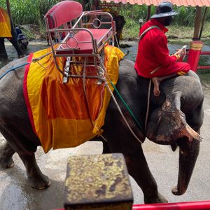 アユタヤ王朝遺跡巡りと象乗り 20分ゆっくり乗って水の中に入っていくスリリングで楽しい ディナークルーズ客船最高でした 料理も美味しい 夜景も綺麗だった 甲板席がおすすめ 雨が降りましたけど良い思い出になった