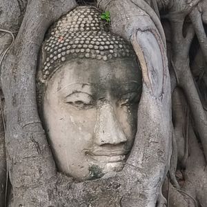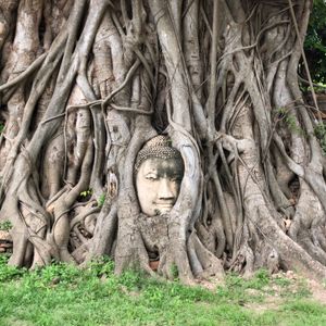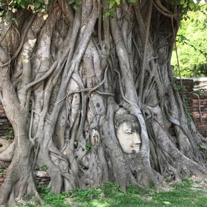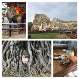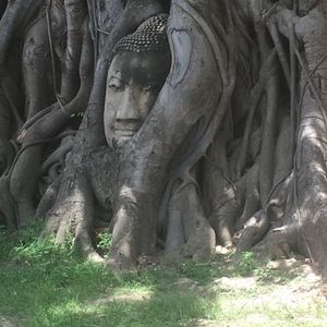 初めタイ旅行...スタートで飛行機が飛ぶ飛ばないですったもんだして結局飛ばずでもアユタヤに行きたい~よし他の便で行こうアユタヤのオプションツアーに行きたいと一路タイヘ 翌朝日本語の上手なガイドさんのお迎えでアユタヤへ アユタヤは私たちの期待を裏切らない壮大な景色と戦争の傷跡が悲しい遺跡でした。ワット・マハータートの木の根に取り込まれた仏頭はとても不思議な感覚で写真で見るより迫力もあり胸が詰まります。今から600年以上前に建てられたとは思えない様な美しい姿が想像できました。本当に来てよかったです、お昼のバイキングもおいしくいろいろなお料理を堪能できました、帰りも渋滞していて買い物に行きたい私たちを気遣い途中から一緒にMRTで近くまで一緒にのって連れて行ってくれたガイドさんに感謝です。(実は次の日に水上マーケットで再会しハグしました。)夜のクルーズも最高でした。生バンドの演奏を聴きながら2時間のクルーズお料理も美味しいし、何しろ夜景かとても綺麗でした。船からのワットアルンはためいきものでした。
