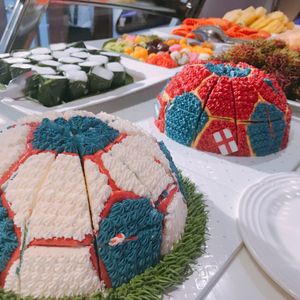 ディナークルーズはビュッフェで、ちょうどワールドカップのシーズンだったためサッカーボールのデザートがあったり、ご飯も美味しくいただきました。