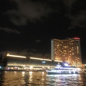 クルーズ前にホテルに戻りシャワーを浴びて着替えて待機。(少しおしゃれしていきましたが、意外とみんな普通の格好)ナイトクルーズは風も気持ち良く、夜景は最高でした。前日に暑い中王宮周辺を観光してたので、違った見方ができて良かったです。ごはんは普通のブュッフェで飲み物代が別です。ランチもディナーも飲み物代が別で買わないといけない雰囲気になるので、1人プラス500バーツくらいにはなることは頭にいれておいた方がいいです。乗る船によって、騒がしさが違うみたいですが、私のは静かでホテルのルーフトップバーがすごい混んでるのでこちらの方が優雅でした。