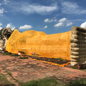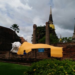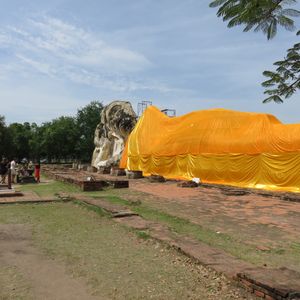 慣れない場所で朝から移動することなく時間通りにホテルに迎えに来ていただき、助かりました。ガイドさんは女性の方で日本語はカタコトでしたが、説明慣れしているようで分かりやすく案内してくれました。各見学場所では、一通りガイドさんが案内してくれた後、20分前後の自由時間があり、毎回ガイドさんおすすめの写真スポットで撮影してくれました。バンパイン宮殿は西洋風と中華風の建物があり、建物の中に入って見学した際には靴を脱ぎました。トイレは出入り口にあり、比較的キレイでした。ココのトイレは観光地のトイレにつきものの5バーツは必要なし!お土産屋さんとくっついているのでお店を眺めながらトイレへ行けます。そのあとは車に乗り込んで日本人街跡を通りすがりに眺め、ロッティ屋さんへ!クレープみたいな生地の上にほそーく伸ばした飴を数束のせてクルクルとまいて食べるのですが、とってもおいしく持ち帰りたいくらいでした。(残念ながら3日程度しかもたないとのことであきらめました)お気に入りのロッティに後ろ髪ひかれながらワット・ヤイチャイモンコンへ。涅槃像の大きな足の裏を眺めながら写真をとり、塔にのぼって景色を楽しみました。この後はお待ちかねの食事。レストランでランチブッフェ。飲み物はその場で各自支払いですが、食事は食べ放題!フルーツだけでなくゼリーや白玉のようなデザートもありました。時間も十分あり、ゆっくり食事&トイレ休憩できました。もちろんトイレはキレイで無料です。木に埋まった仏像の頭があるので有名なワット・マハタートは直前の台風で頭の周りの木を少し伐採したようでガイドブックの写真とちょっとだけ変わってました。ワット・プラシーサンペットでは3つの塔が並んだ場所で記念撮影。そして初の象乗り体験です。別途一人200バーツかかりますが、とても気持ちがよくて楽しいです。象から降りる際に40バーツほどチップをあげるのですが、象さんが鼻で回収してくれます。最後はワット・ロカヤスタ。大きな涅槃像を見学し、ホテルへ戻ります。戻り時間はだいたい15時半くらい。効率よくアユタヤをまわれて大満足でした。
