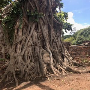 木の根に仏像な顔が埋まってる画像をガイドブックで見たことがある場所。写真を撮るときはその仏像より上に立ってはいけないとのことでしゃがんで写真を撮りました。その後ワット・プラシーサンペット。ここは青空と雲と建造物の組み合わせがまるで映像で観てるかのよう素晴らしい光景でした。1日かけて色々周ったので疲れましたが、満足なツアーでした。機会があれば、次回は夜のライトアップツアーに参加してみたいですね!