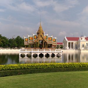 初めてのバンコク旅行で、旅行前にアユタヤ遺跡巡りのツアーを探していて、バンパイン宮殿付きのツアーを見つけました。ガイドブックには他のものより小さく掲載されていてそれほど有名じゃないかなと思いましたが、行ってみてびっくり。美しく広々とした庭園に心奪われました。ここに来れて良かったと思いました。もちろん有名な世界遺産であるアユタヤ遺跡も素晴らしかったです。行った時期か雨季だったのでスコールが心配でしたが、晴天に恵まれて青空と遺跡の素敵な写真をたくさん撮ることができました。