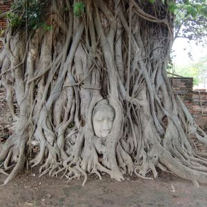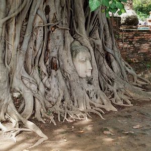 ガイドブックでも知られたワット・マハタートの木の根に被われている仏頭は百聞は一見にしかず。