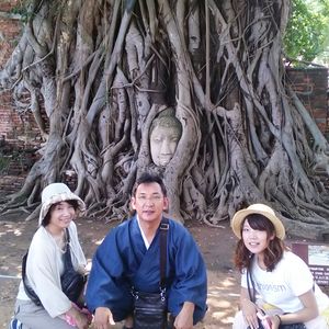 アユタヤに何があるかとかほとんど調べることなく参加したツアーでしたが、ガイドさんの説明もわかりやすく、全体の数的にも7名程と小規模でゆっくり観光できたため、アユタヤの雰囲気を思いきり感じることができました。しかし、ミニバンだったので、バンコクからアユタヤまでの行きの移動の際に少し揺れ、車内でジャンプするような状況が何回かありました。特に印象的だったのはおよそ7分程度の象乗り体験でした。そこでは、40バーツのモデル料、およそで120円程度で2頭の子象と2パターン写真が撮れるということで、コスパがかなり良かったと思います。しかし、象使い?のおじさんに写真を撮ってとカメラを預けたにも関わらず全く撮れていませんでした。このツアーが悪いのではないですが、象と記念撮影される方は預けたカメラで写真がちゃんと撮れているかどうか確認されることをお勧めします。