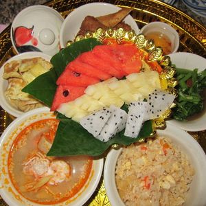 お食事も、タイ料理の懐石版みたいで、適量でおいしかったです。連れて行ってもらったレストランでのパイナップルジュースは、とってもおいしかったです。お勧めですが、受け取ったら氷で薄まるのでなるべく早く飲み終えたほうがいいです。