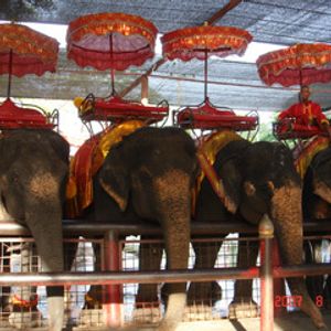 アユタヤ遺跡ももちろんよかったですが、像乗り体験が一番よかったです!思ったよりも長く乗れ、普通の道路も越えてノシノシと散歩できました。その後、別料金でしたが子像のしゃがんだ足に座って首に抱きつきながら写真も撮ることができ、普通ではできない体験でした。残念ながらにわか雨が降り、アユタヤ遺跡のライトアップは車内からしか見れませんでしたが、それでも大満足のツアーでした。一人で参加しましたが、同じツアーの方々が優しく接してくださり、夕食も同じテーブルで皆でとりましたので、楽しいツアーとなりました。