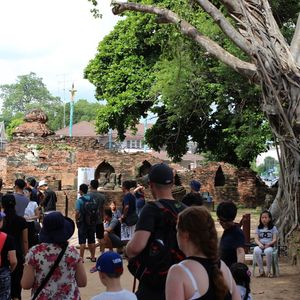 寺院、遺跡をたっぷり堪能するために、丸一日のプランに申し込みました。しかし、目的地に着いても写真を撮るだけで、団体が来て混むからと言ってゆっくり見させてくれない。一方で、全然関係ない自分の自慢話や世間話はみんなの足を止めて話し続ける。ガイドの日本語も片言過ぎてほぼ何を言っているか分からない。物理的にただ移動して写真撮るだけで全く堪能できなかった。ほぼ記憶に残っていません。私は自分の写る写真にそれほど価値を置いてないので、記念撮影だけすればいいんでしょ、という姿勢が嫌でした。私はちゃんとその場所の歴史や建物をじっくり見聞きしたかったです。さらにダサいポーズまでいちいち指定されて苦痛でした。試行錯誤しながら自分で移動して自分のペースで見た方が良かった。あと、料金外で勝手に現地で取られた記念写真を有無を言わさず売りつけられたのには呆れました。大きな写真で、一人参加のためワンショット。これで300バーツ。邪魔だし高いし頼んでもないのに迷惑でした。これが最初の見学場所だし、その後のこともあるので断れず。ガイドと現地の業者がそういう流れになるよう約束しているのだろうと思います。写真業者が、ガイドの代わりに寺院のチケットを早めに行って買ってきているようでした。途中のお昼休憩も、一時間とると言ったのに、食べ終わったでしょと言って15分ほど早められました。本当はちょっとゆっくりしたかったのですが。高速見学の結果、案の定、予定より2時間ほど早くホテルに到着。こんな内容でこの値段は高いです。返金して欲しいくらいです。今まで参加した現地ツアーで一番ひどかったです。