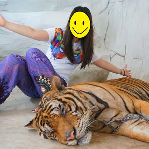 そこに寝そべっている虎もいて、100バーツでたくさん写真を撮ることが出来ました。