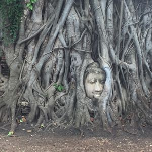少し前にワットマハタートの仏頭を抱えた木の枝が落ちたそうですが、ギリギリで仏様の顔には当たらなかったとか!