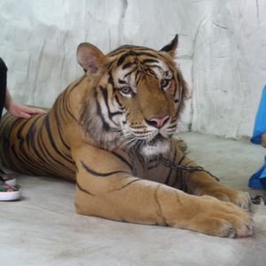 遺跡観光した後に、エレファントビレッジに行きました。中では、象、トラ、羊などに触れます。