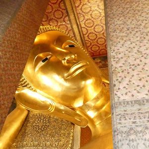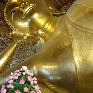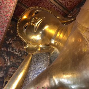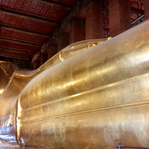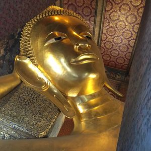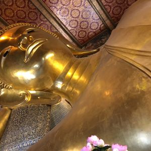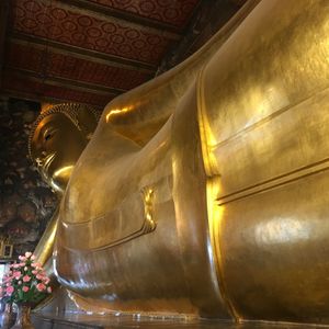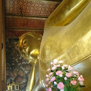 朝はガイドさんがホテルで時間通りにピックアップしてくれました。なかなか日本語の説明も上手でした。国王御崩御で1年間のお葬式期間中のため、多くの公務員の方が王宮に弔問に来ていました。王宮内の金の細かな装飾に感動、ワットポーの涅槃像の大きさにびっくり。