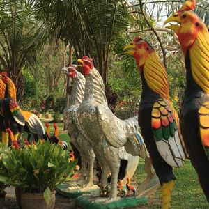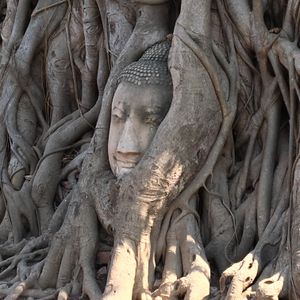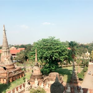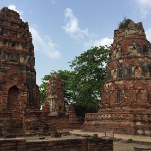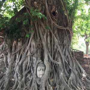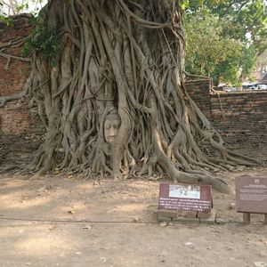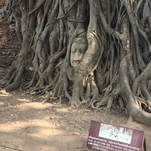 滞在時間が短いので1日で三大寺院とアユタヤを観光できるこのツアーに参加しました。天気も良く、ツアーの参加者は3人だけだったのでガイドさんに写真をたくさん撮ってもらいました。ワットマハートの仏頭はかなり地面に近い所にあり、人だかりがなければうっかり通り過ぎてしまいそうでした。壁は壊され、全ての仏像の頭部がなくなっている様は戦争の悲惨さを感じさせます。入り口で売っていた黒豆のアイスとタロ芋のアイスをガイドさんに勧められて食べましたが、とても美味しかったです。他の2名の方は苦手だったようで、ちょっと好みが分かれるようです。ワット・プラシーサンペットの仏塔は圧巻でした!ただ、登り下りする階段が凸凹しているので足元にはよーく注意しましょう。さらに反対側の方にある願いが叶うとお礼に軍鶏の置物を捧げるという、ちょっと不思議な場所はへ案内されました…凄い数の願いが叶ってるようで大小様々な軍鶏像が道にひしめくように置いてある姿はなかなか見応えのある光景です。かなり駆け足ですが、希望があれば自由時間を多めに取ってくれるのでオススメのツアーです。