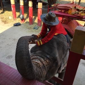 アユタヤの象乗りの場所では、トラに触る
