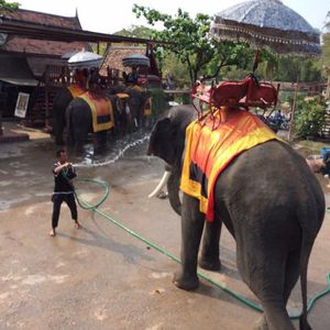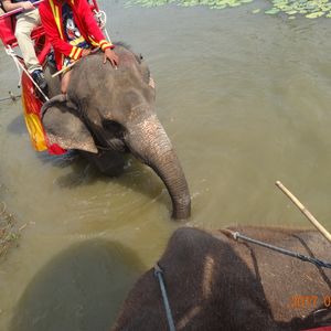 ランチのホテルビュッフェは期待してなかったのですが、思ったよりおいしくいろんなタイ料理が食べられました。午後からはアユタヤに行き暑かったですが、ミネラルウォーターをくださり助かりました。ゾウにも乗れて、トラと写真をとることも出来ました。幸い渋滞に巻き込まれることもなく17時ごろには帰ってこれたので、買い物に行くと言ったらホテルではなくサラディーンの駅まで送ってくださり助かりました。とても感じのいいガイドさんで写真もたくさん撮ってくれました。
