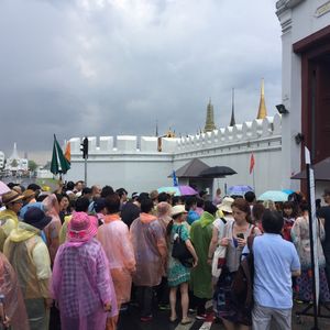 学生時代の友人と4人で参加しました。寺院の豪華絢爛さやそのスケールの大きさに圧倒されました。 王宮観光では、プミポン国王の弔問の為にタイ全土から団体で来ている人々の多さに驚かされました。平日で朝9時過ぎには現地に到着していましたが、かなり多くの人たちがながーい列を作って参拝の順番を待っていました。平日でこの状態でしたので土日の混雑さは想像できます。平日の参加をお勧めします。