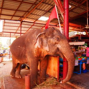 一番の目的だったアユタヤのエレファントキャンプでは、ゾウの他にヒツジやトラ、ライオンなどもいて見応えがあり、200Bでトラと記念撮影もできました。ゾウ乗りも体験しましたが、ゾウたちの温厚さ、従順さ、大人3人乗せて悠々と歩く力強さにとても感動しました。