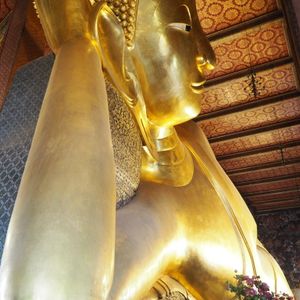 妻と二人、定年旅行でバンコクに来ました。今回の目玉は市内観光とエステでした。プミポン国王喪中で王宮の中には入れませんでしたが、市内の寺院めぐりとアユタヤに行ってきました。車での移動はそうありませんでしたが、さすがに戸外は暑く日光も日差しが強かったです。アユタヤではワットヤイチャイモンコン、ワットロカヤスタで大きな巨大な涅槃像を鑑賞して、ワットマハタ-トでの木の根に埋もれた仏像にびっくりしました。その前で写真も撮りました。市内では、ワットアルンからワットポ-の巨大な黄金涅槃像を見ながら、108の賽銭を妻と入れていきました。かなり豪華でハ-ドな1日観光でした。