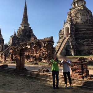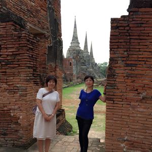 午前中6人だったメンバーが、午後からは私達2人だけに!お陰で、時間配分も自由にさせて頂けました。かつては王朝の都がおかれた古都が、約250年前にビルマ軍の攻勢に敗れて滅亡。廃墟となった現在も随所に寺院や宮殿の跡が残っており、以前の栄華を肌で感じる事が出来ます。ガイドさんの説明はとても興味深く、帰国したら世界史を少し勉強しよう、と言う気持ちになりました笑。
