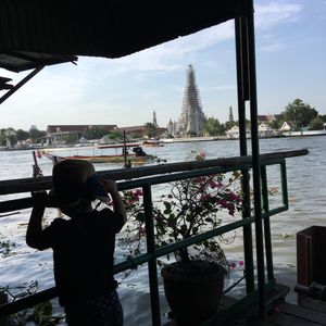 まず、午前中は市内の大寺院観光巡り。特にエメラルド寺院と呼ばれるワットプラケーオは、国王の逝去でお参りする現地の人達で混み合いセキュリティも厳しい状態で、先導していただかなければ入場を躊躇していたかもしれないと思うほどでした。しかし、ここの美しい黄金の仏塔や、絢爛な壁の装飾、回廊を鮮やかに飾る壁画等は、タイを訪れたなら観なければ勿体無いと思うほど素晴らしいものでした。涅槃像のあるワットポーでは、ガイドさんから、煩悩を捨てるの容器に一つ一つ硬貨を入れて行き最後にお願い事をするといいよ、聞き、早速トライ!これも、教えてもらわなければ知らなかった事でした。ワットアルンには、渡しボートで渡りました。考えていたより距離もあり、案内して頂ける安心感は大きかったです。