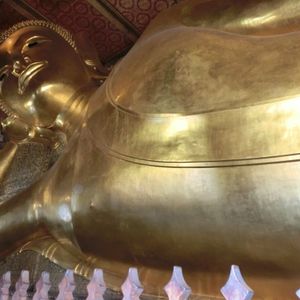 午前中は三大寺院。ここではそれぞれガイドさんに細かく解説していただきました。超有名な涅槃像は、足の裏が工事中で、ちらっとしか見えません。残念。午前中で水を2本頂きました。これは助かる。