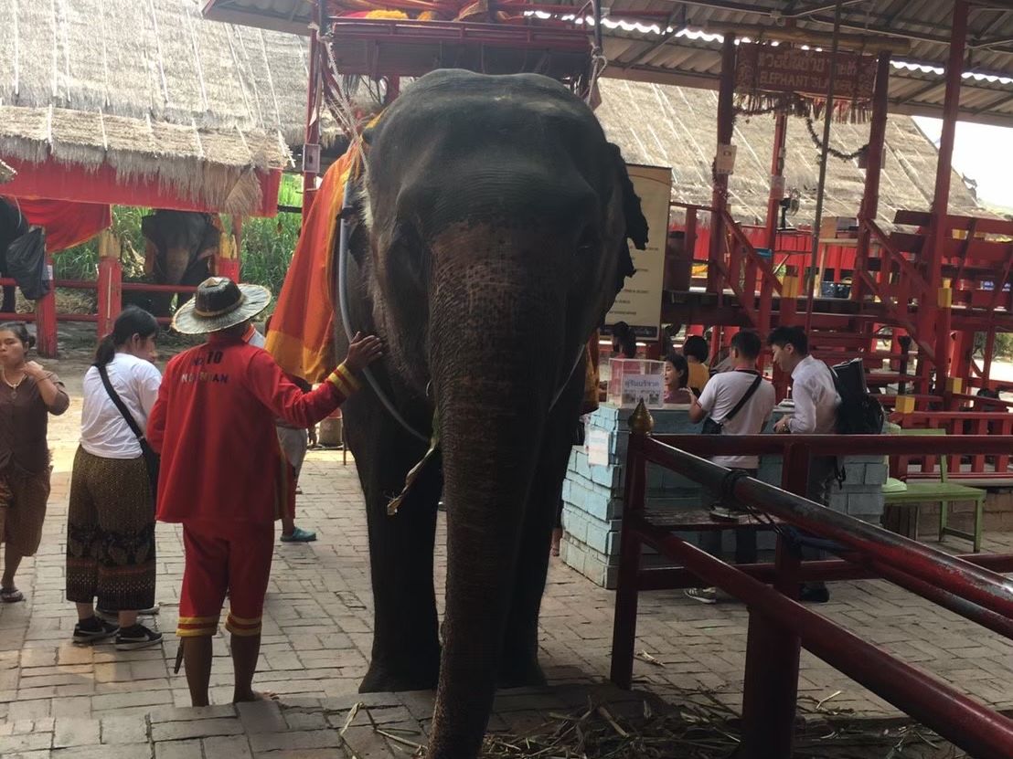 アユタヤ遺跡、メークロン線路市場、水上マーケット、象乗りのツアーに参加しました。