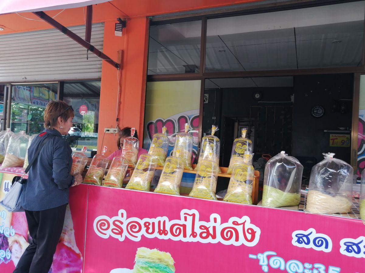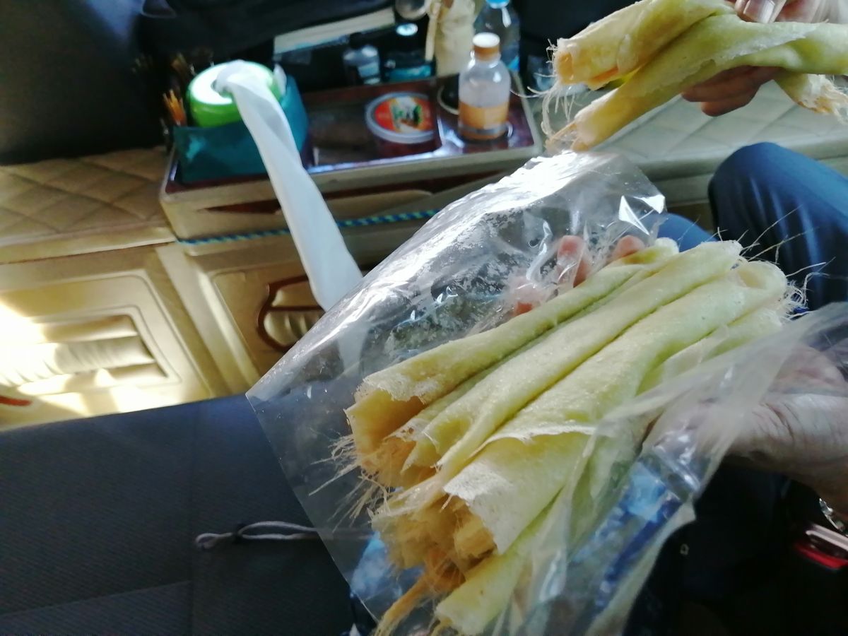 移動の最中「ロッテイサイマイ」のお店へ、普段は降りて作っているのを見学するそうですが、暑いので此方は車中で待機。「一人2本どうぞ!」と云われましたが、「ウーンあんまり美味しそうじゃないな」と思いつつ口へ運びました。「ウーン これは美味い!」アユタヤ地方の銘菓と言われている通りだと思いました。「甘すぎず繊細な味でいて、後を引く」これが土産に出来るなら最高だが、作り立てに価値があり、作り置きは出来ない代物だと思います。アユタヤに行かれる方は一度試してみて下さい。