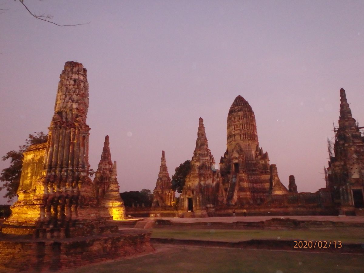 一番のお目当ては、川沿いのホテルのレストランからワット・チャイワッタナーラームを眺めつつタイ料理、その後のライトアップでしたが、なかなか贅沢な時間が過ごせたと思います。