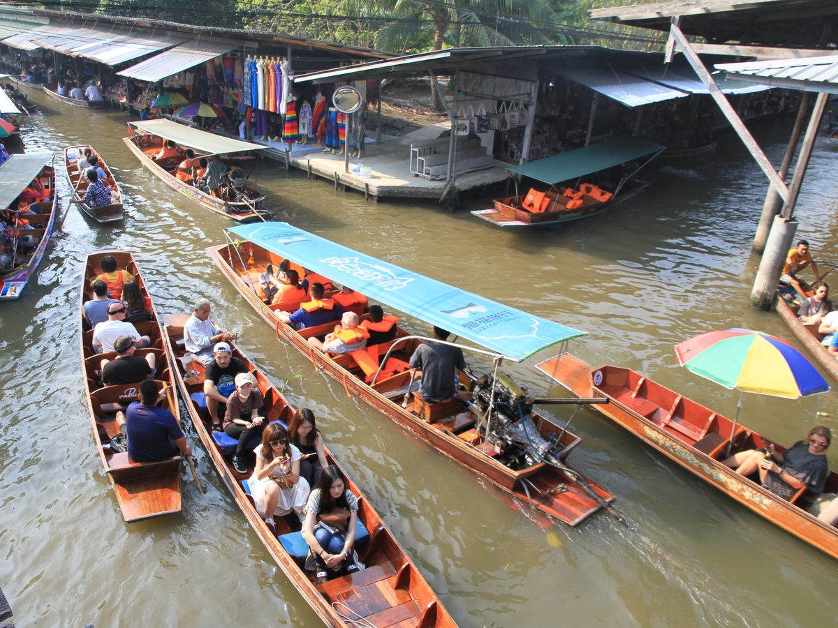 水上マーケットは別途各自200バーツで手漕ぎボートに申し込まないと、一箇所で待つことになりあまり楽しくないかと思います。橋などはないので、降りた場所にあるお店を見るしかやることはありません。
