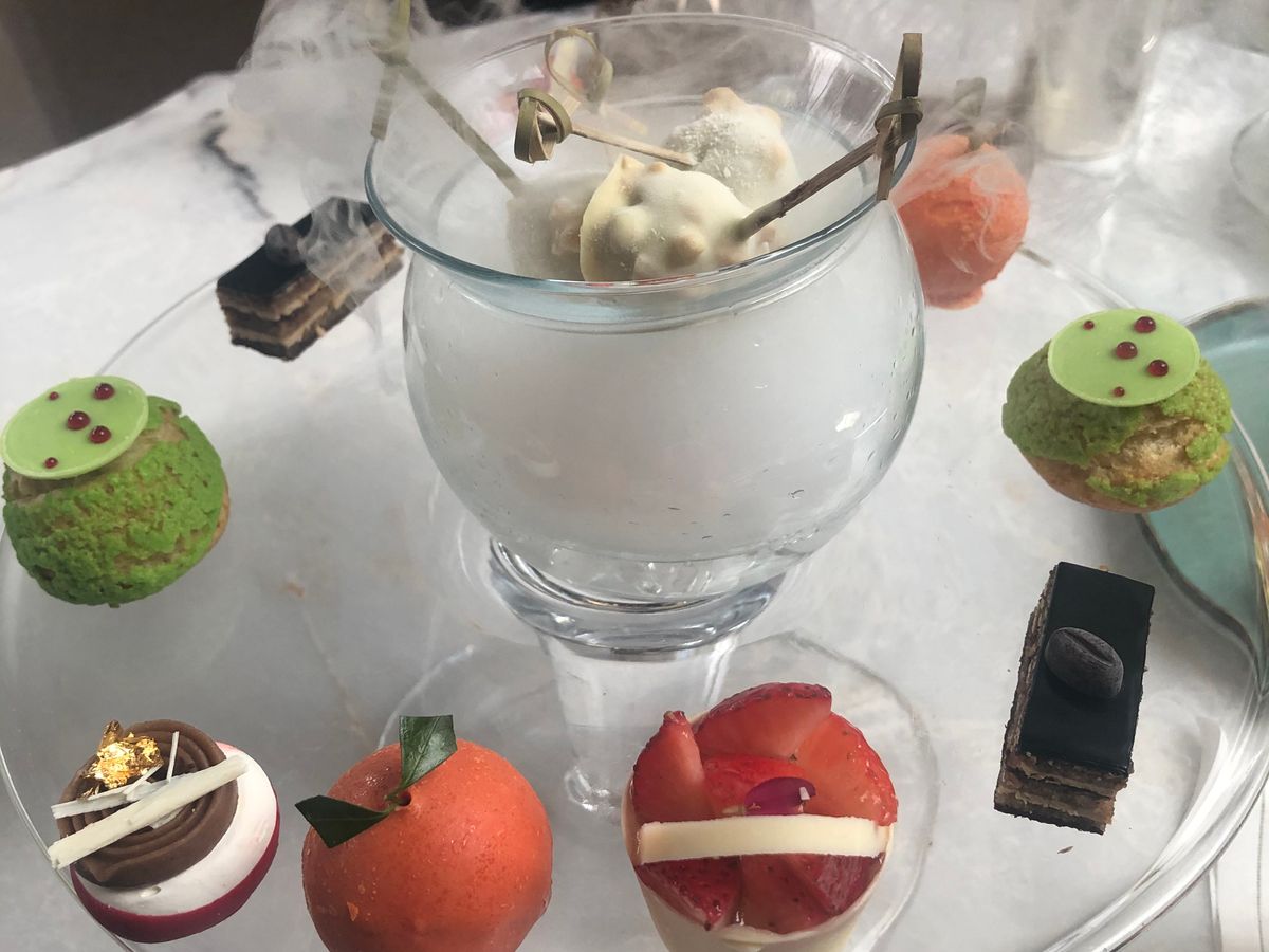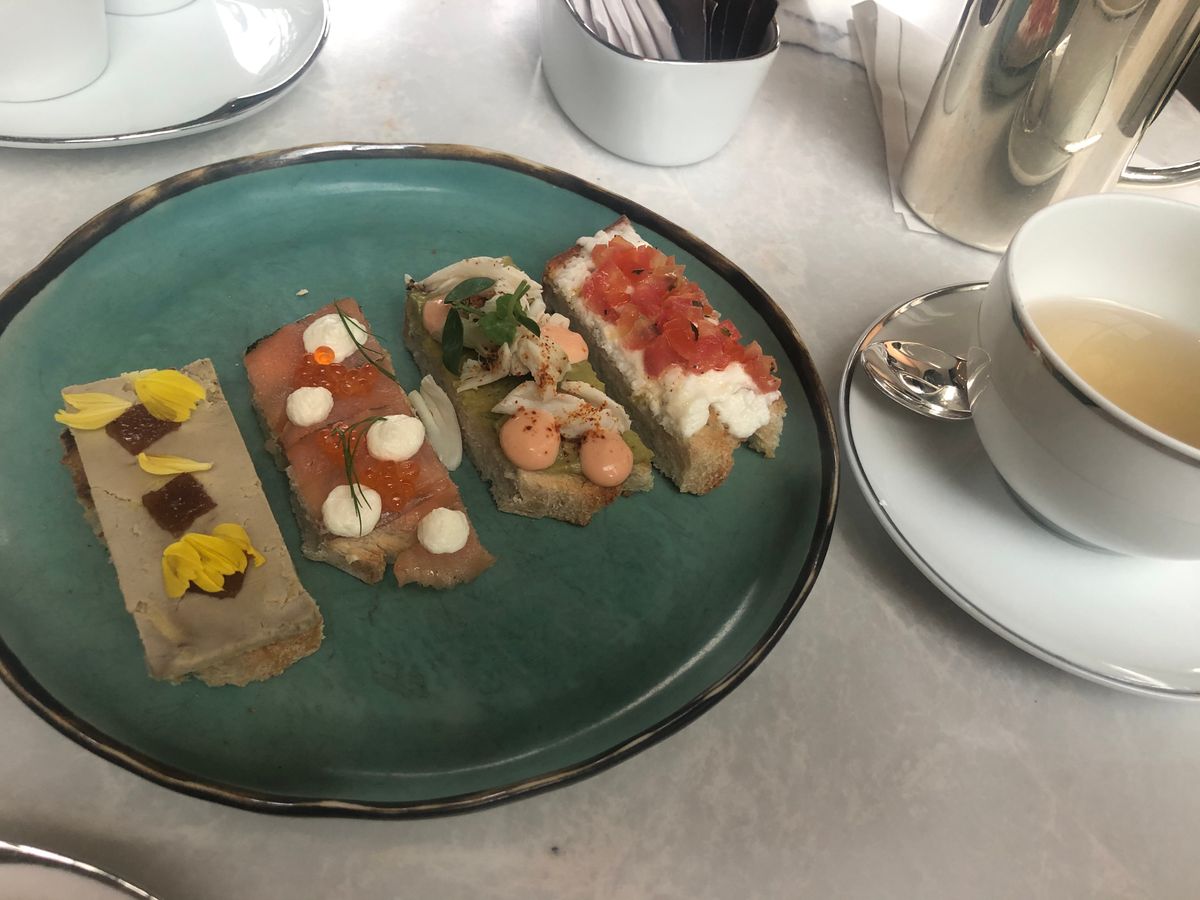 アフタヌーンティーは、とてもオシャレで、SNS映えします。ドライアイスの演出も、盛り付けも素敵でした。オープンサンドが特に美味しかったです。ただ、甘党ではない私には少し甘すぎました。