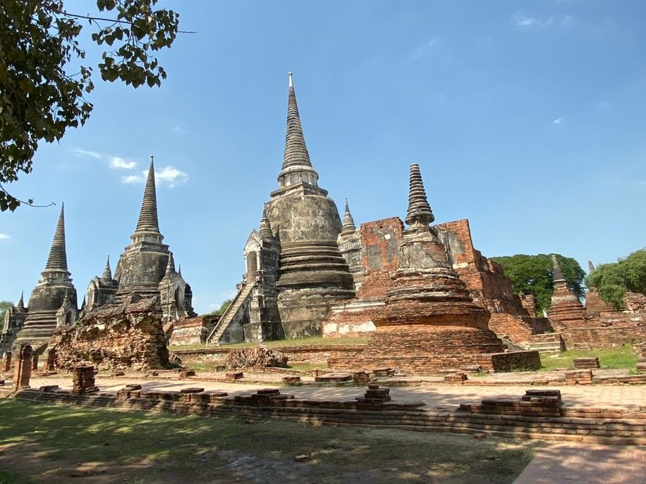 11月のタイは30度越えでクラクラ。これだけの遺跡を自分たちでまわるのは不可能に近かったので、効率よくまわることができました。日本人街はビデオを見るだけでしたが、アユタヤに日本人街があったことが興味深かったです。
