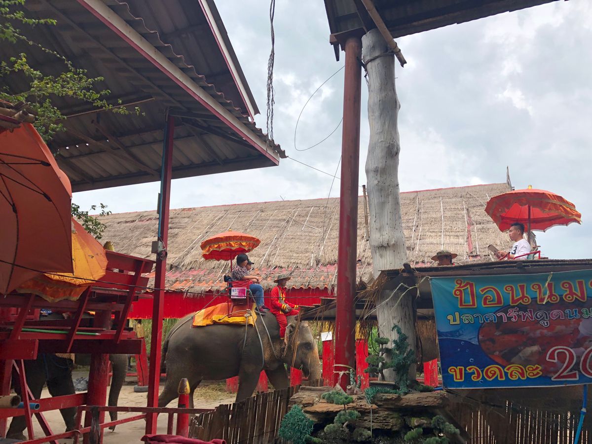アユタヤ周辺では最初、象さん乗り体験~。