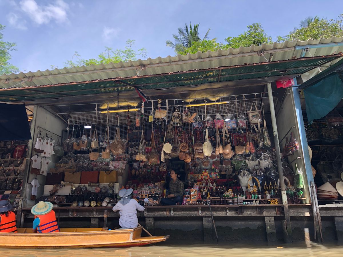 水上マーケットは手漕ぎボートが別料金で、一人200バーツ(700円ほど)取られます。これはガイドブックに載っている料金よりもはるかに高く、やや違和感がありました。オプションではないエンジンボートは全くの意外で、高床式の家やマーケットをゆったりと見てまわることはできません。ジェットコースターのようにハイスピードで川を昇るため、非常にスリリングです。これはこれでおもしろかったですが、水上マーケットのゆったりとしたイメージを持っているのであれば、全く違うので注意が必要です。もちろんこのボートではマーケットで物を買うこともできません。