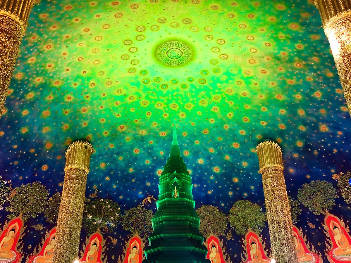 ワット・プラ・マハタートの仏頭はとても神秘的でした。優しいお顔でまっすぐ前を見据えていて、菩提樹に囲まれ守られているように感じました。無意識に手を合わせてしまいます。ワット・ロカヤ・スターは、通り沿いのセキュリティも何もない公園に無造作に横たわっていて、その様子があまりにも気持ちよさそうで、見ているだけでほっこりとします。ワット・パクナムは緑色の神秘的な空間で吸い込まれそうになります。造りも細やかで見入ってしまいます。カリプソキャバレーも綺麗なだけでなく、笑いも兼ねたステキな舞台でした。