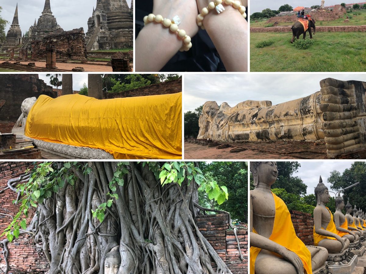 アユタヤでは念願の象乗り体験。あれもこれも(象乗り+象の鼻に巻かれる+写真購入+アクセサリー売られる)していたらまあまあのお金が必要でしたが、私達はそれも目的の一つだったのでとても満足できました。不要なら、お断りできる雰囲気でした。