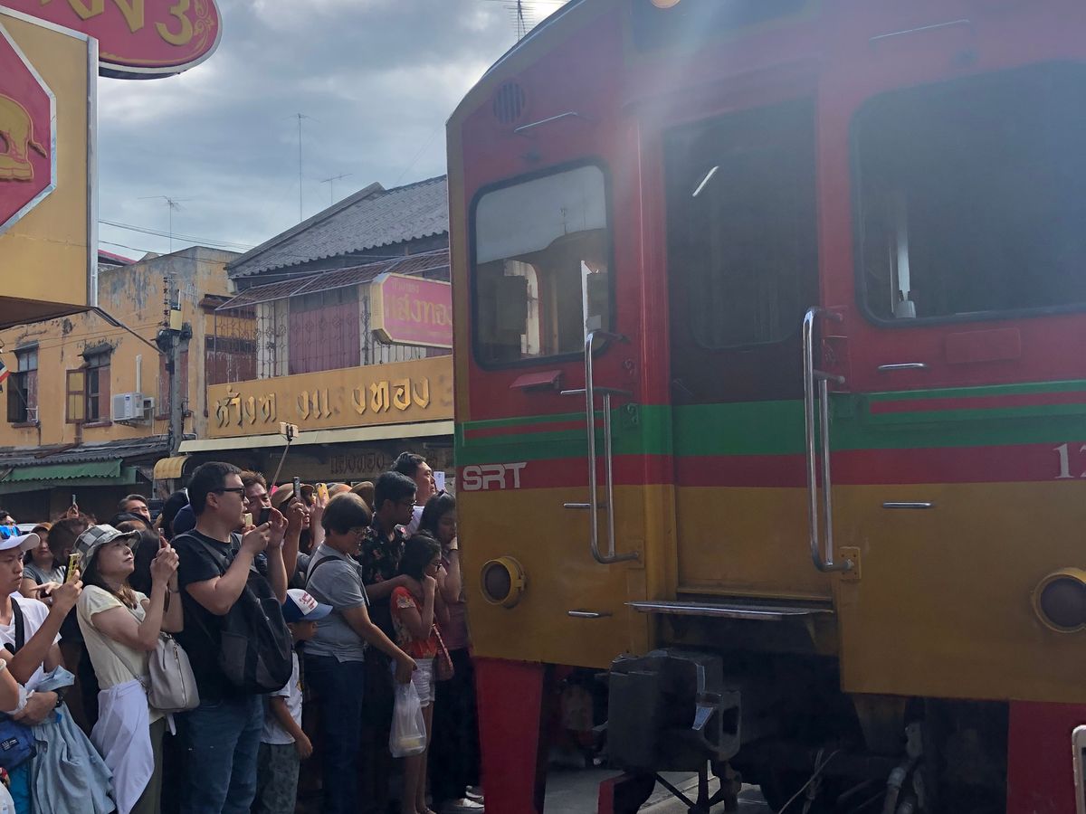 ツアーで連れて行ってもらって良かったです。水上マーケットは観光化されていました。小型ボートは風情はありますが、いらないものははっきり断るとよいですね。馴染みの露店に横付けされ、つい買ってしまいました。後で全員で乗るエンジンボートは爽快です。メークロン線路市場は興味深い。像は一人で乗ったら40バーツ請求されました。チップは彼らの大事な収入源なのですね。