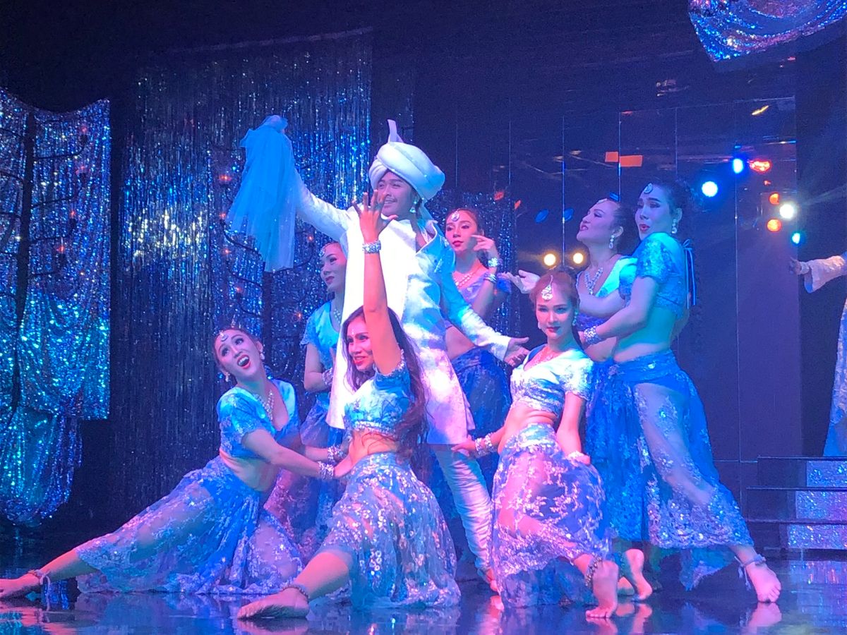 夜ご飯は自由で、再び集まりカリプソニューハーフショー、これも必見!