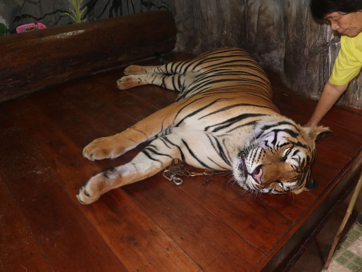 トラの写真撮影もできます。1人200バーツです。ごろんと横たわったトラのお腹に手を当てて写真を撮ってくれます。